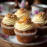 Moist and flavorful Carrot Cake Cupcakes topped with creamy cream cheese frosting, perfect for any occasion.